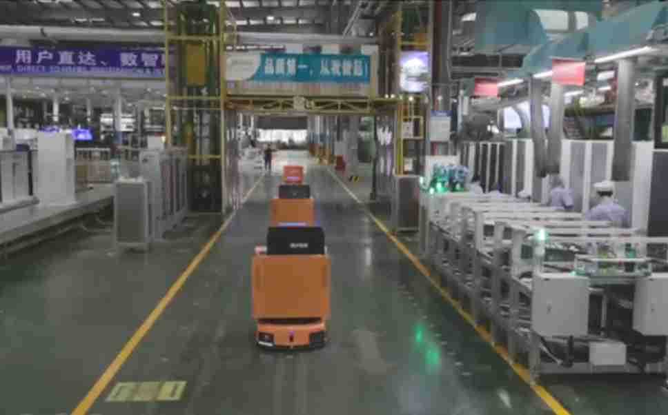 为车载冰箱物流配送打造的智能解决方案,,包含产中物流通过潜伏举升AMR搬运至线边,,产后成品物流智能仓储,,流程包含产中物流智能齐套入库,,,线边安灯叫料AMR智能配送至线边,,,成品入库、、、、出库,,,,通过无人堆高车机器人,,,智能仓储管理替代人工作业管理,,,实现更高存储、、更高效率、、、更具柔性化的解决方案。。。。
